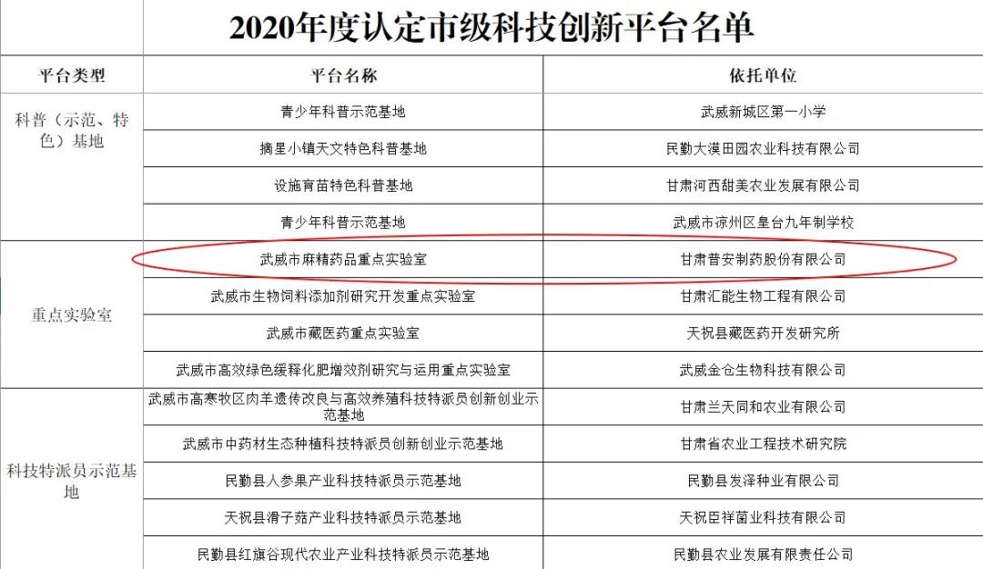喜報!普安制藥通過“2020年武威市麻精藥品重點(diǎn)實驗室”認(rèn)定