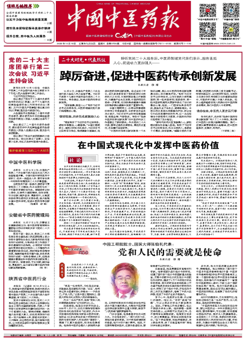 【中國中醫藥報社論】在中國式現代化中發揮中醫藥價值