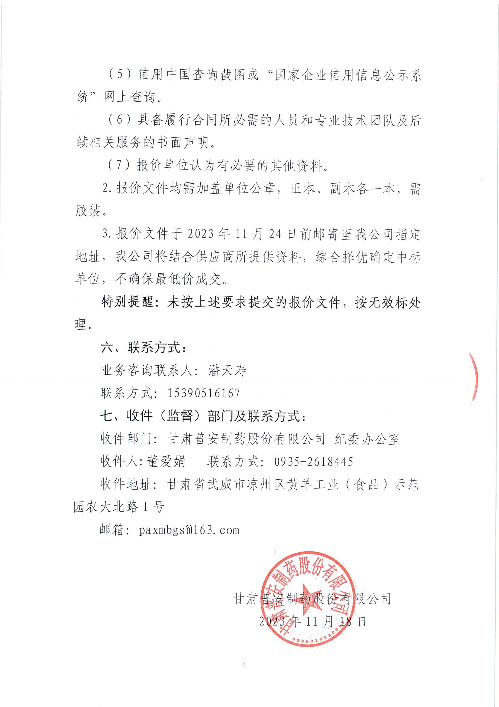 甘肅普安制藥股份有限公司年產5000萬盒(3億支)宣肺止嗽合劑等液體制劑生產線升級改造項目環評驗收詢價公告