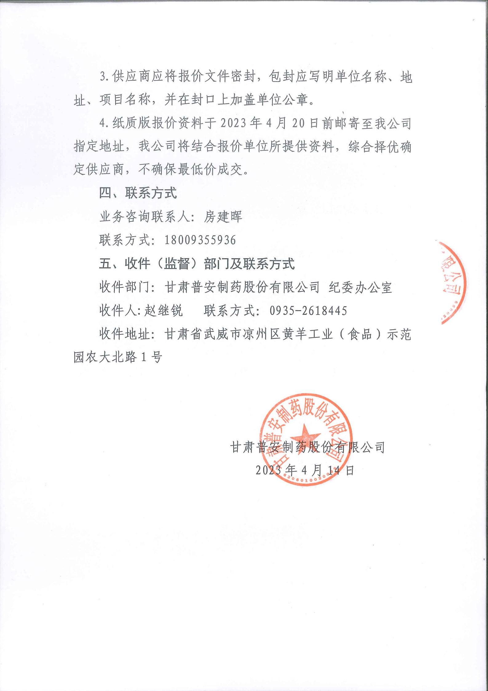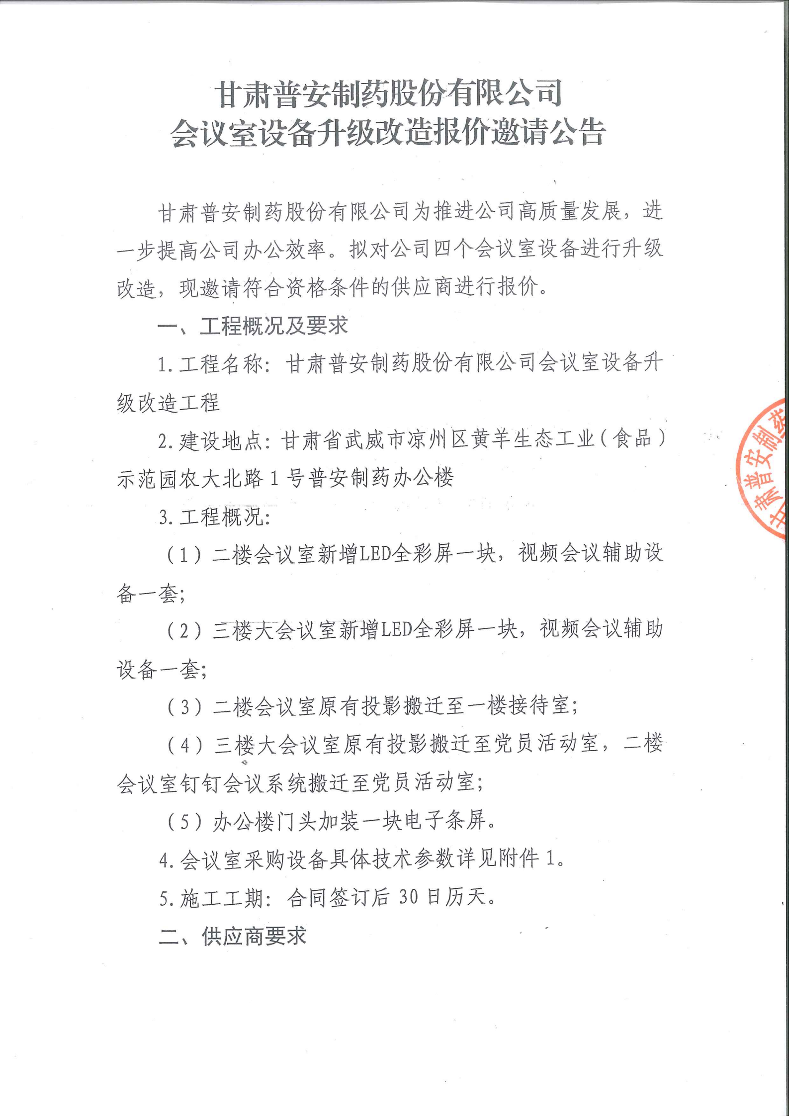 甘肅普安制藥股份有限公司會議室設(shè)備升級改造報價邀請公告