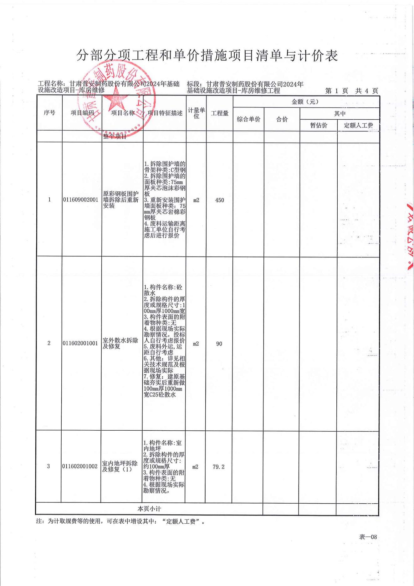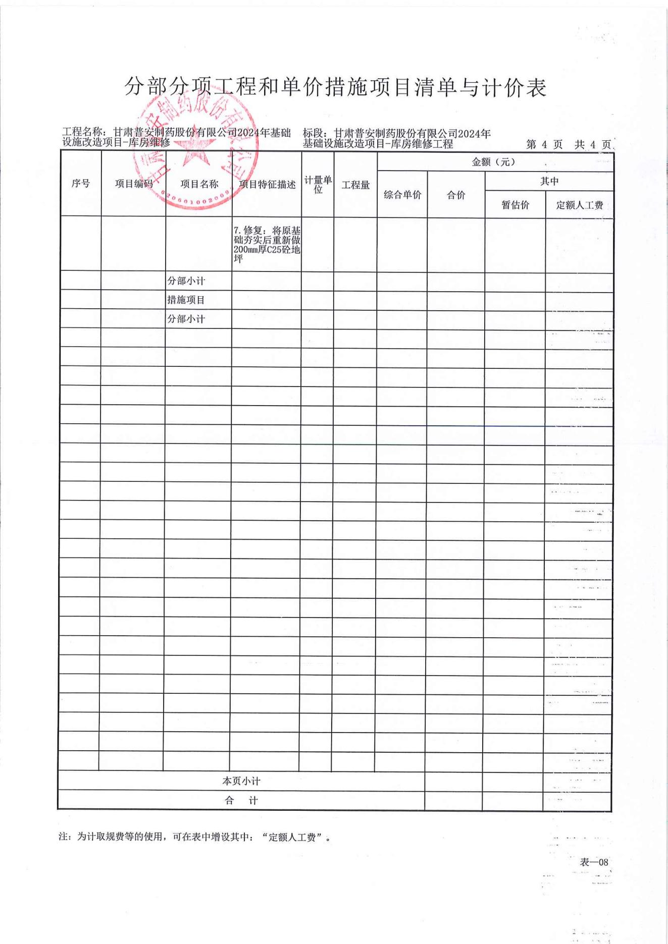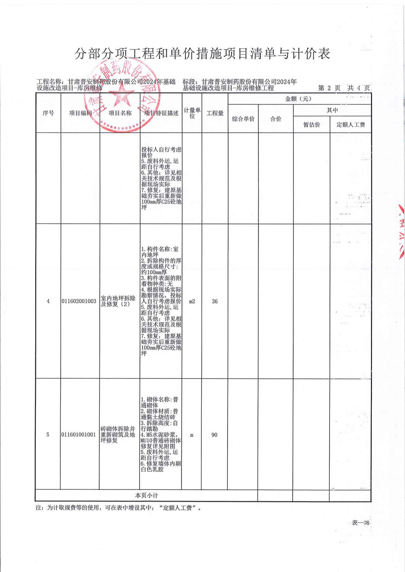 甘肅普安制藥股份有限公司2024年基礎(chǔ)設(shè)施改造項目-庫房維修工程施工招標(biāo)公告