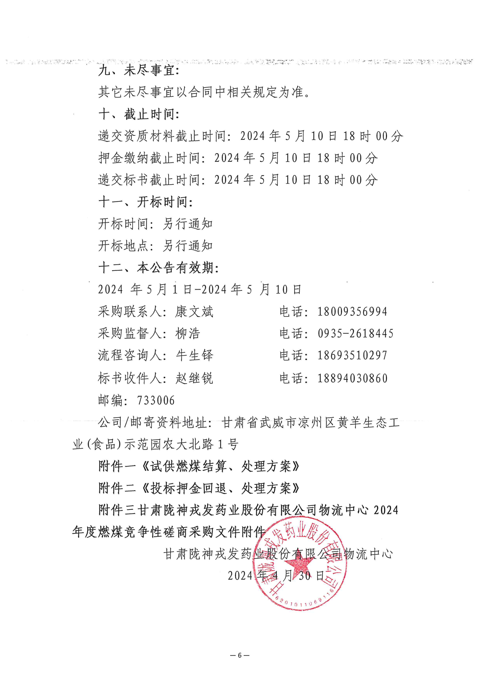 甘肅隴神戎發藥業股份有限公司物流中心2024年度燃煤競爭性磋商采購公告