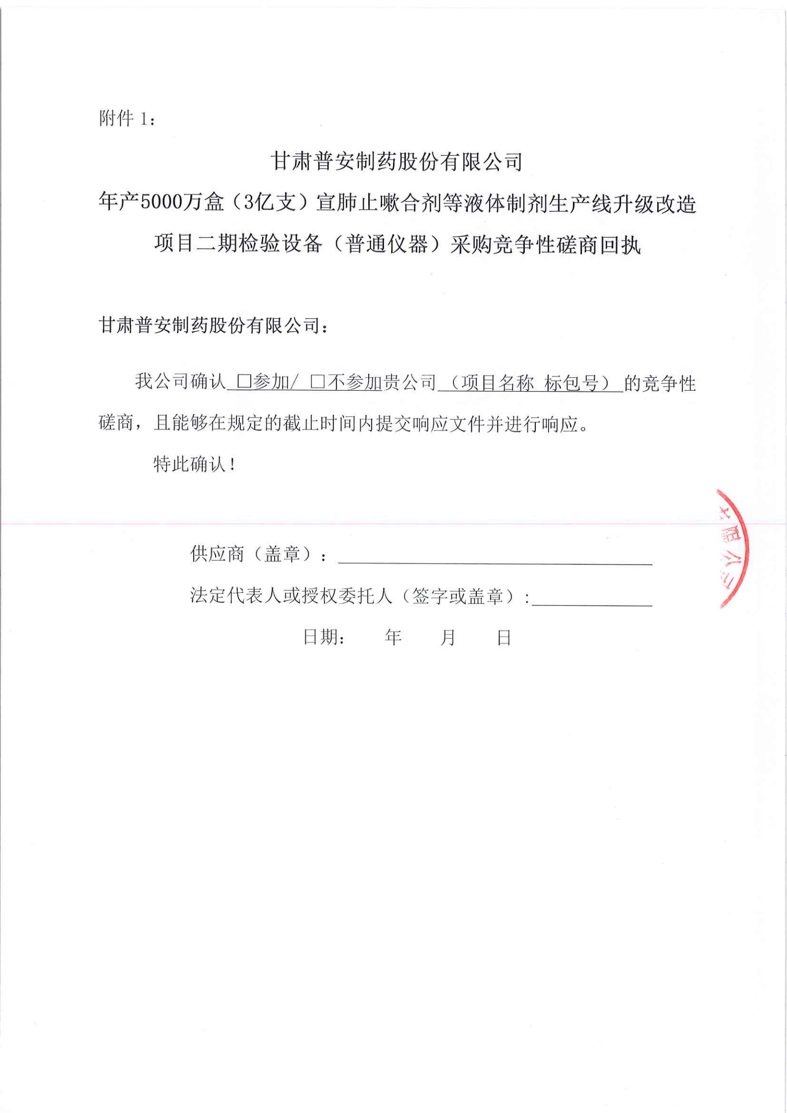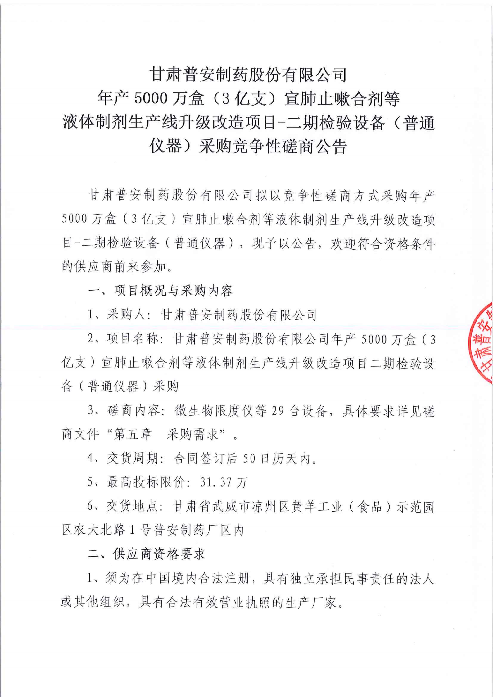 甘肅普安制藥股份有限公司年產(chǎn)5000萬盒(3億支)宣肺止嗽合劑等液體制劑生產(chǎn)線升級改造項(xiàng)目二期檢驗(yàn)設(shè)備(普通儀器)采購競爭性磋商公告