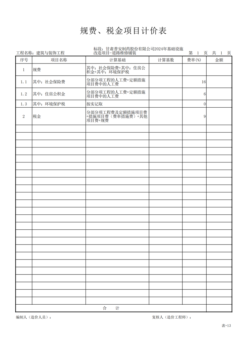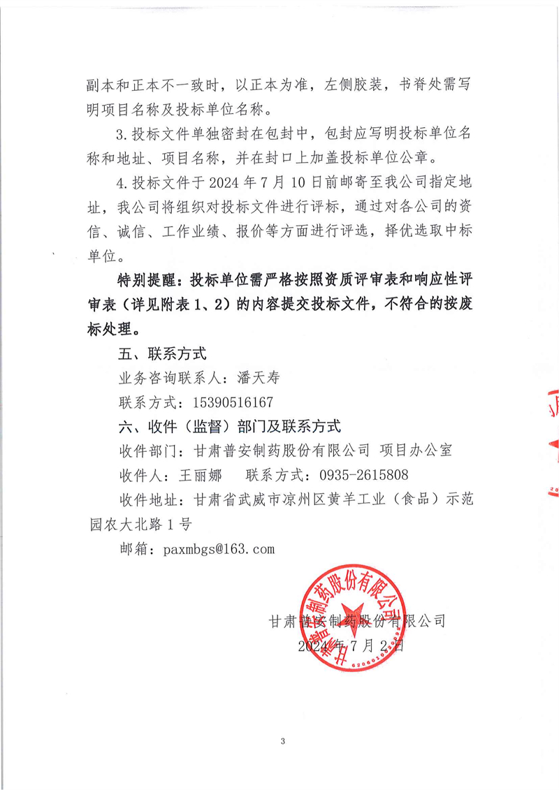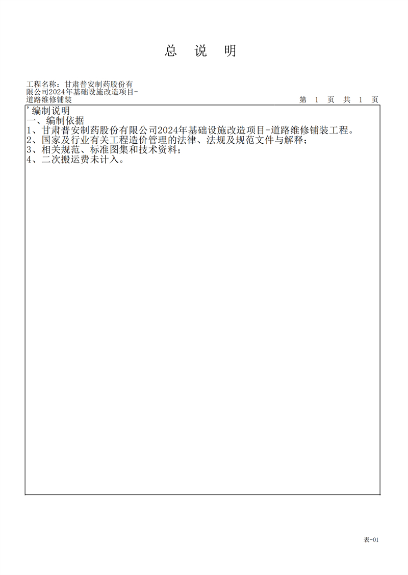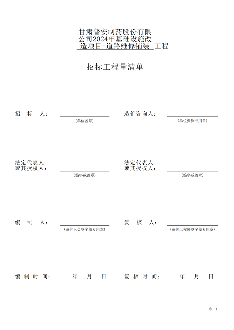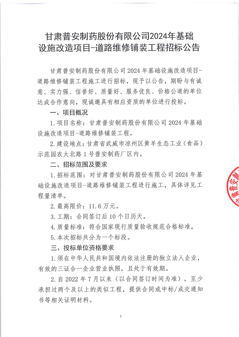 甘肅普安制藥股份有限公司2024年基礎設施改造項目-道路維修鋪裝工程招標公告