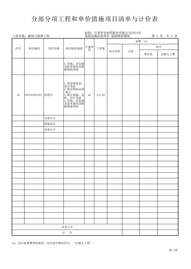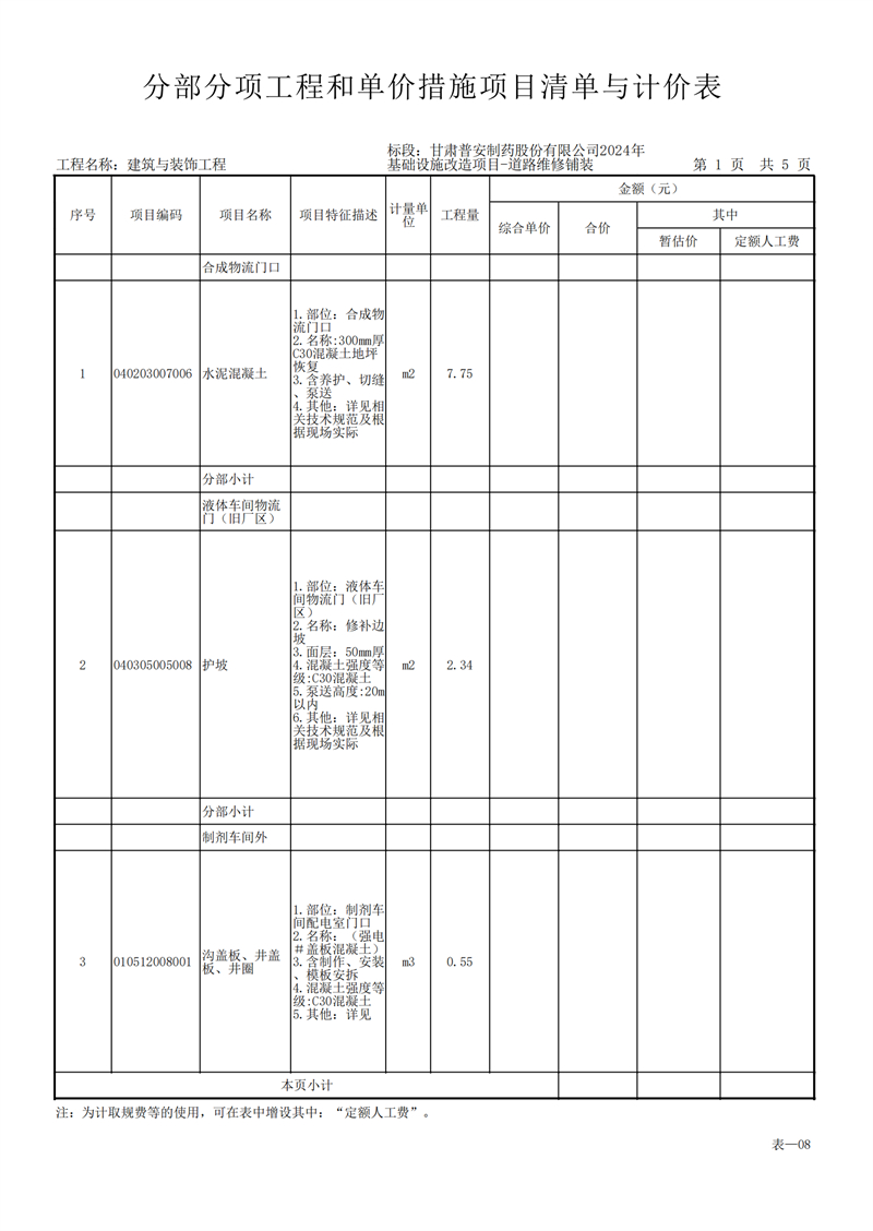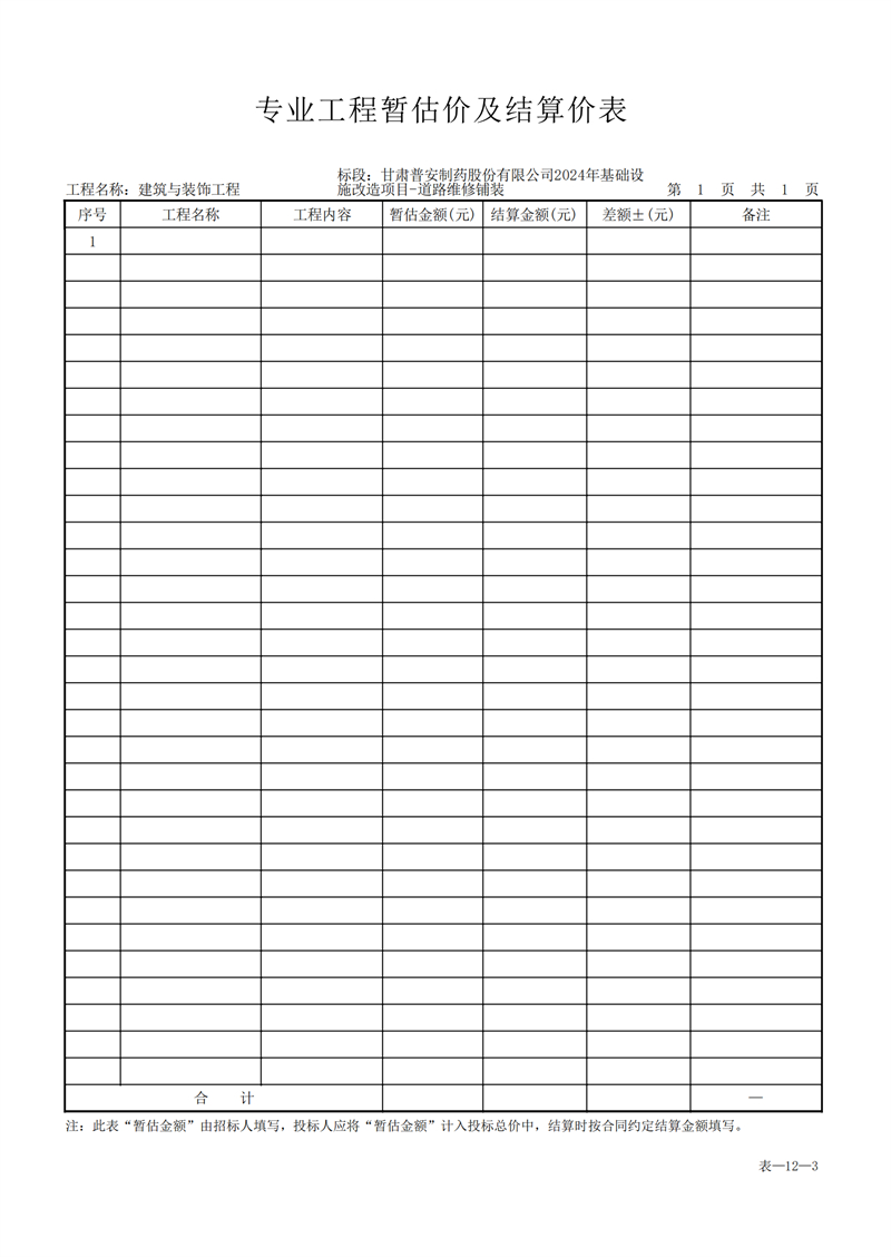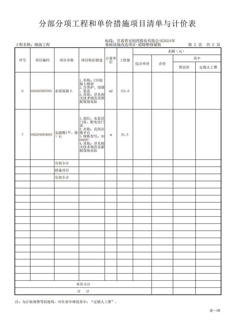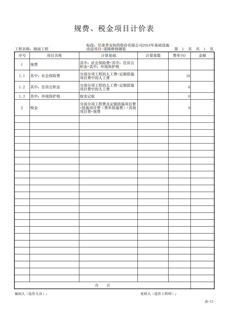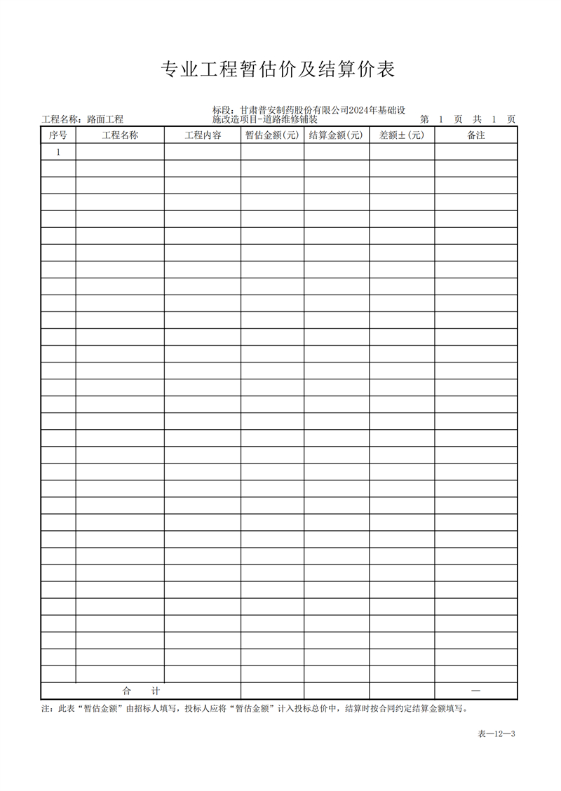 甘肅普安制藥股份有限公司2024年基礎設施改造項目-道路維修鋪裝工程招標公告