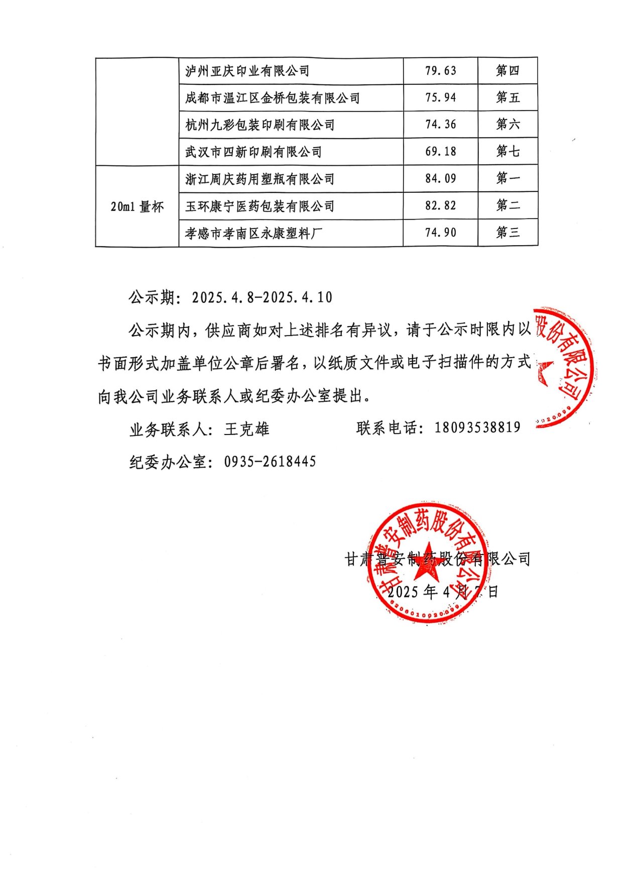 甘肅普安制藥股份有限公司2025年宣肺止嗽合劑包裝材料招標(biāo)采購(gòu)結(jié)果公示