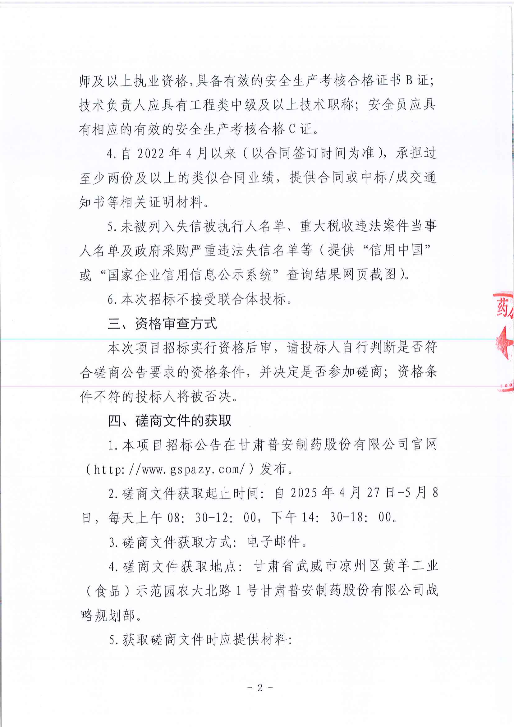甘肅普安制藥股份有限公司2025年基礎設施改造項目——停車場擴建工程競爭性磋商公告